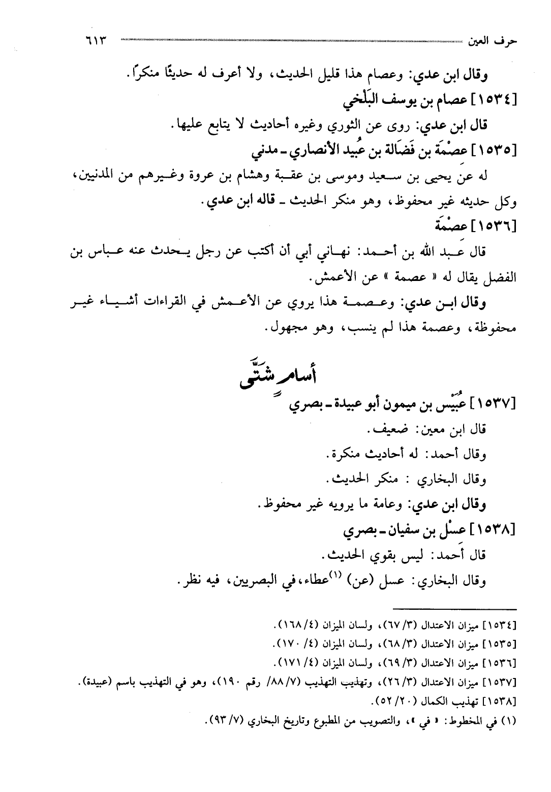 وَقَالَ ابْن عدي: وعصام هَذَا قَلِيل الحَدِيث، وَلَا أعرف لَهُ حَدِيثا مُنْكرا.