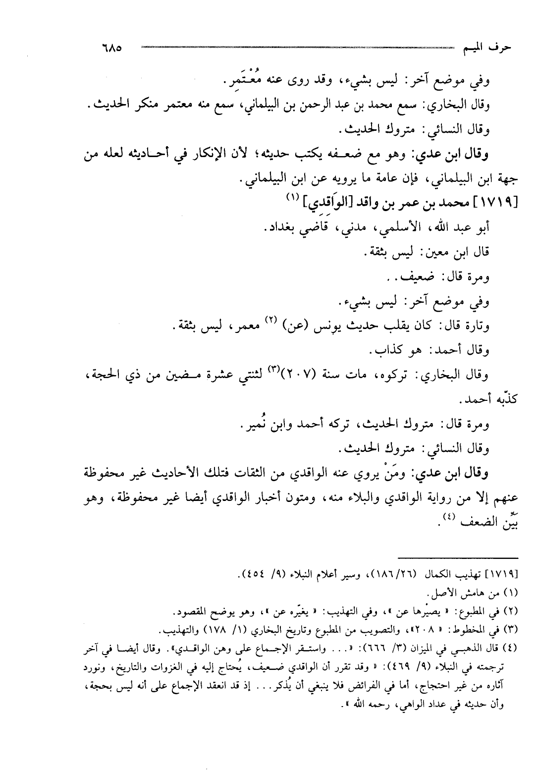 [1719] مُحَمَّد بن عمر بن وَاقد [الْوَاقِدِيّ]