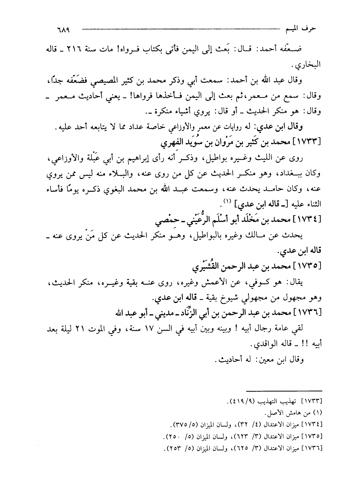 وَقَالَ ابْن عدي: لَهُ رِوَايَات عَن معمر وَالْأَوْزَاعِيّ خَاصَّة عداد مِمَّا لَا يُتَابِعه أحد عَلَيْهِ.