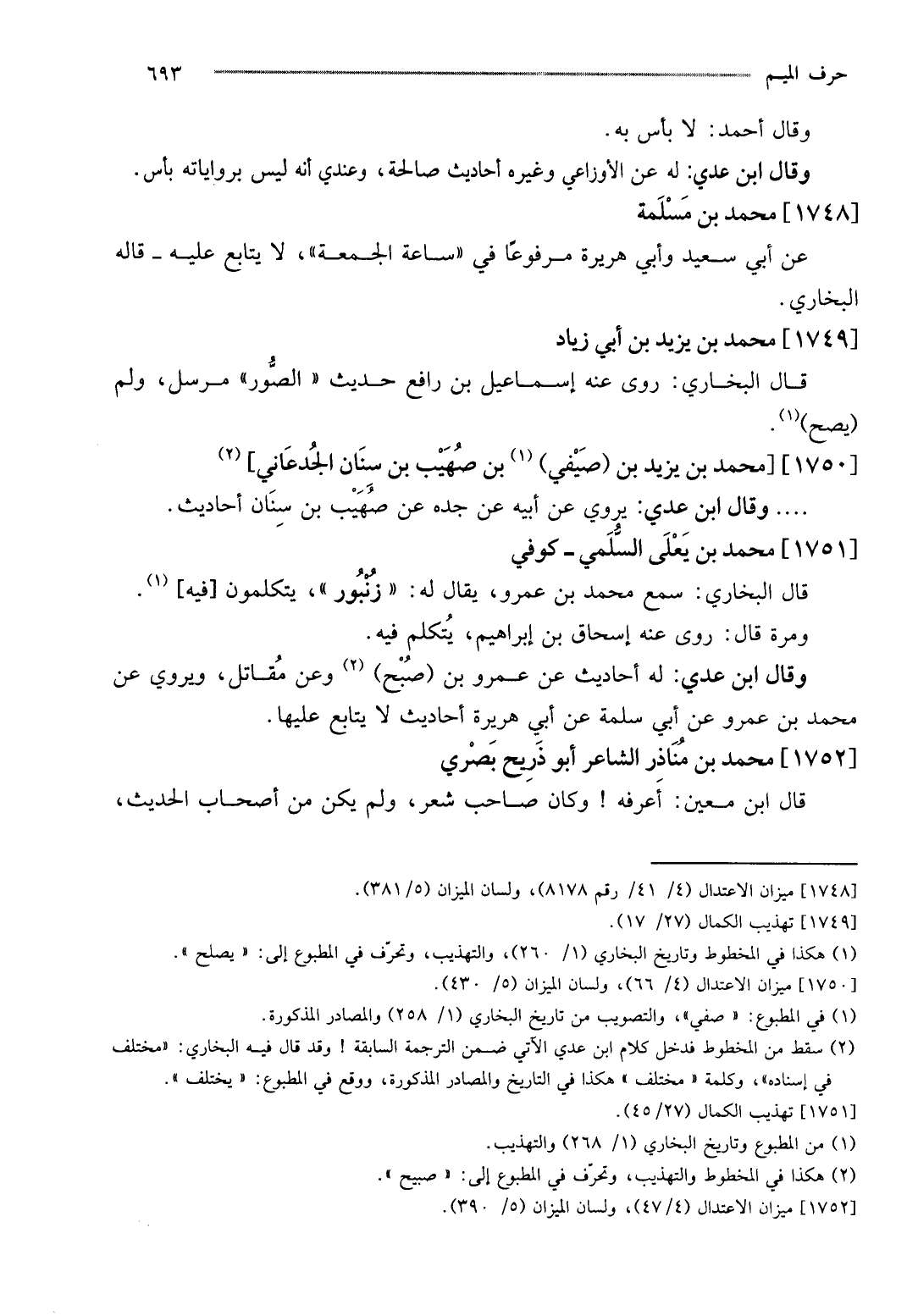 [1750] [مُحَمَّد بن يزِيد بن (صَيْفِي) بن صُهَيْب بن سِنَان الجدعاني]