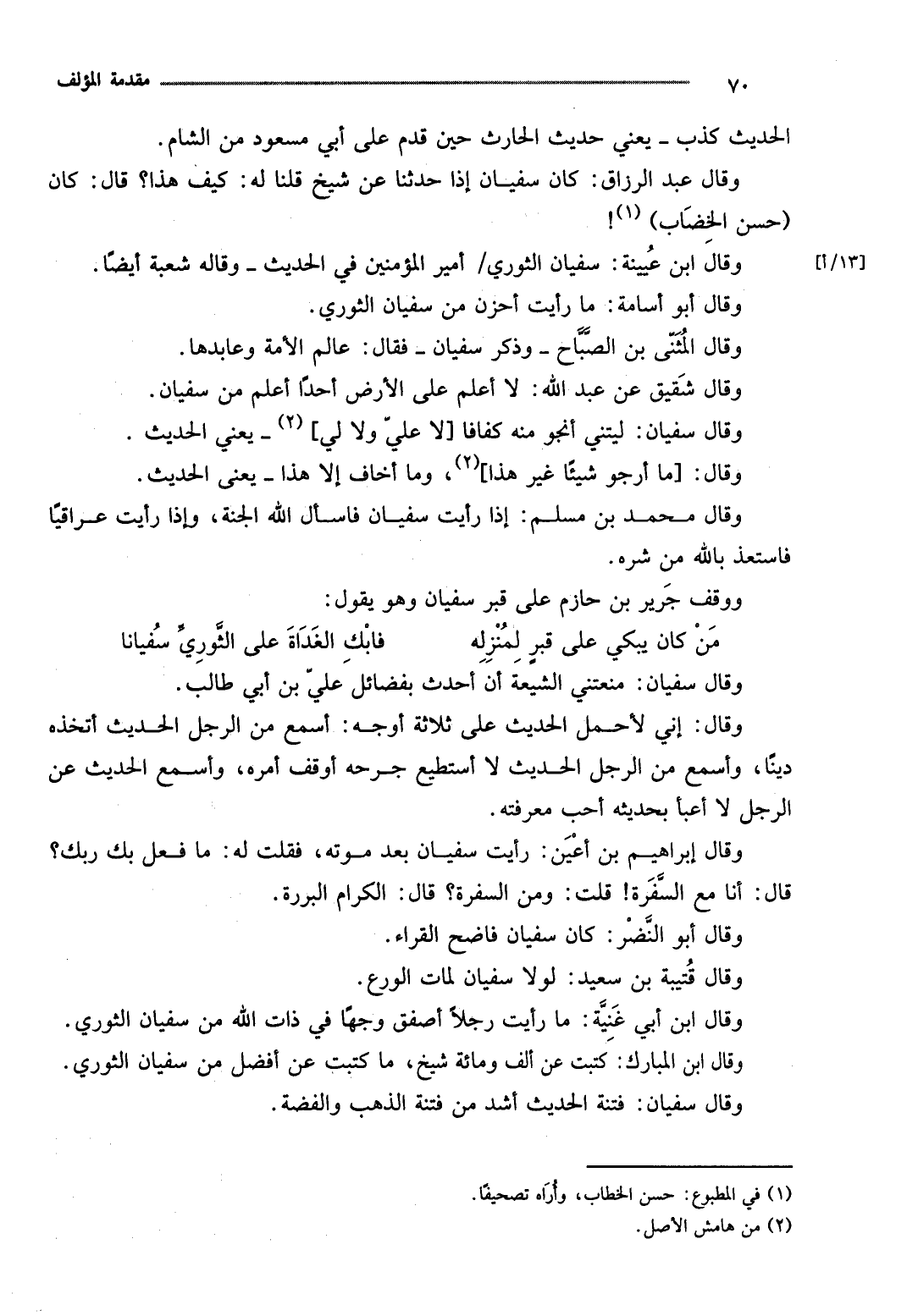 وَقَالَ ابْن عُيَيْنَة: سُفْيَان الثَّوْريّ / أَمِير الْمُؤمنِينَ فِي الحَدِيث - وَقَالَهُ شُعْبَة أَيْضا.