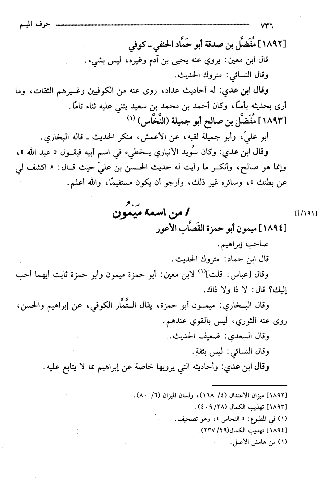 [1892] مفضل بن صَدَقَة أَبُو حَمَّاد الْحَنَفِيّ - كُوفِي