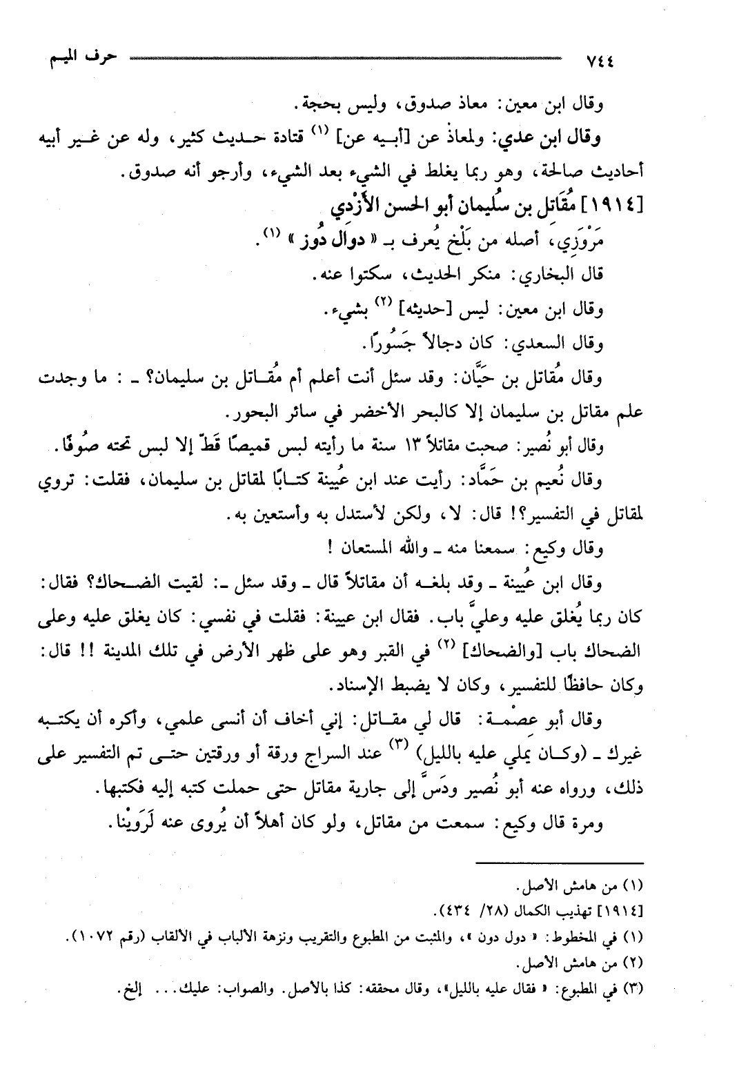 [1914] مقَاتل بن سُلَيْمَان أَبُو الْحسن الْأَزْدِيّ
