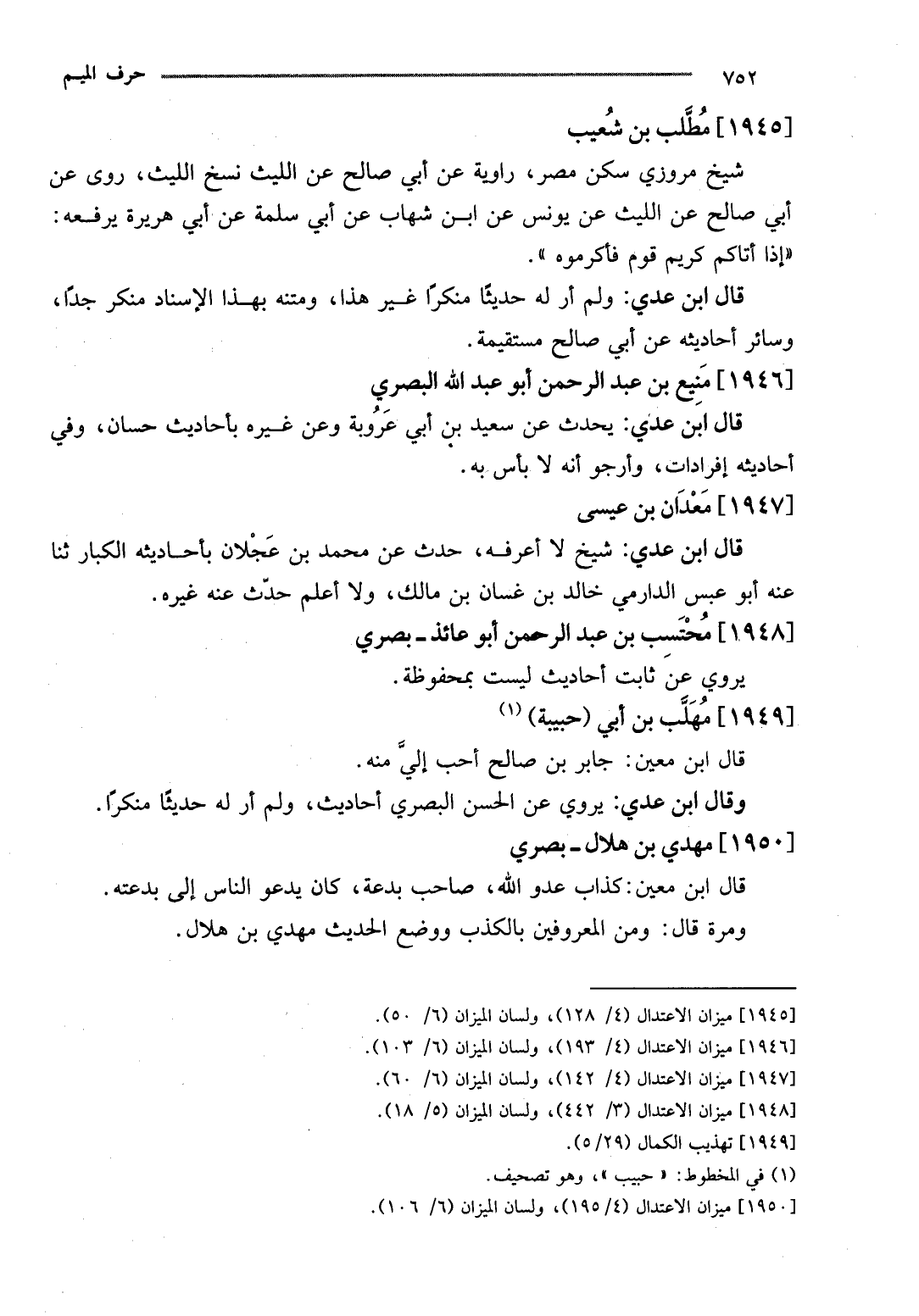 وَمرَّة قَالَ: وَمن المعروفين بِالْكَذِبِ وَوضع الحَدِيث مهْدي بن هِلَال.