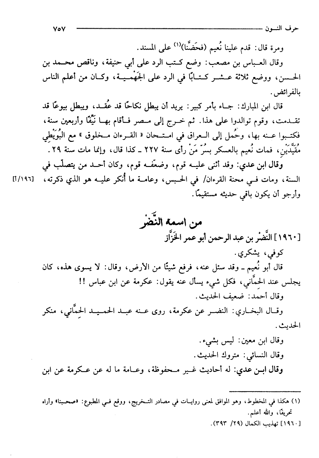 [1960] النَّضر بن عبد الرَّحْمَن أَبُو عمر الخزاز