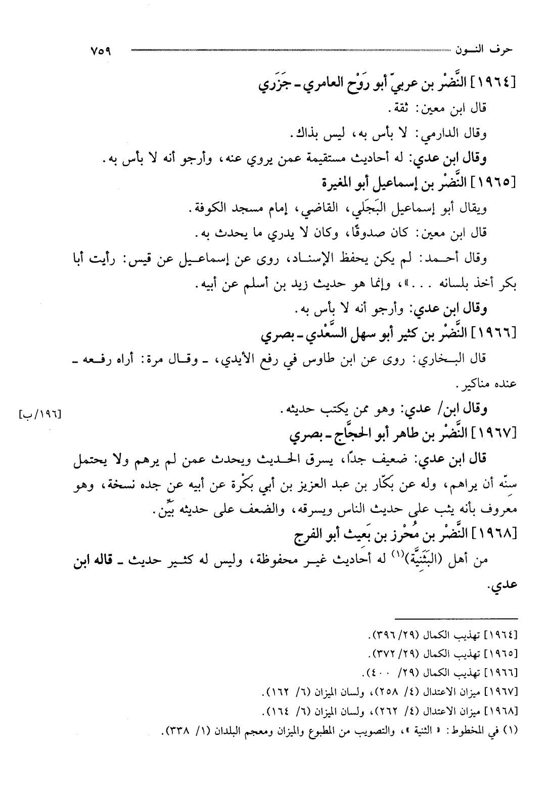 [1967] النَّضر بن طَاهِر أَبُو الْحجَّاج - بَصرِي