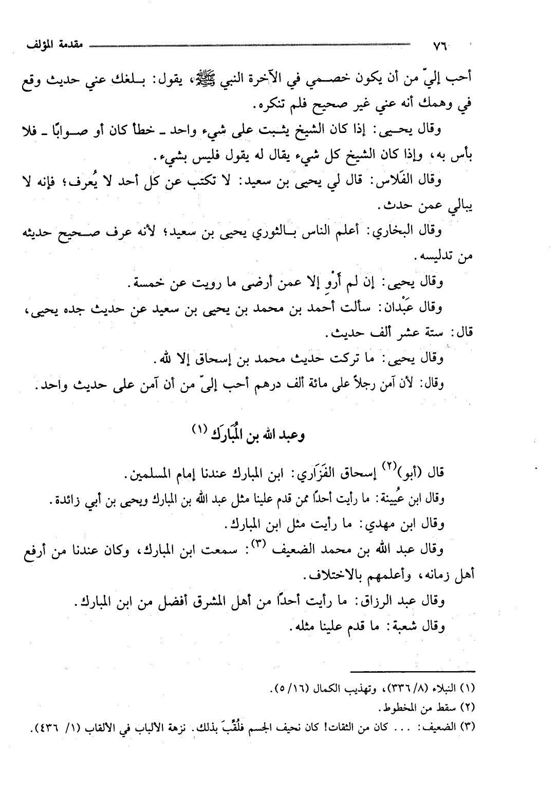 وَقَالَ عبد الله بن مُحَمَّد الضَّعِيف: سَمِعت ابْن الْمُبَارك، وَكَانَ عندنَا من أرفع أهل زَمَانه، وأعلمهم بالاختلاف.