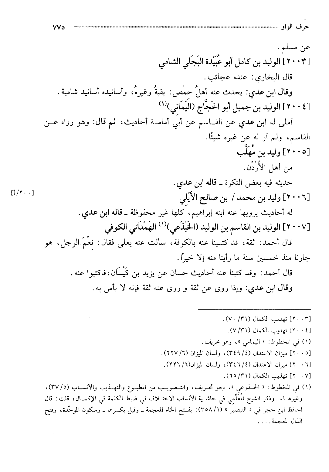 [2003] الْوَلِيد بن كَامِل أَبُو عُبَيْدَة البَجلِيّ الشَّامي