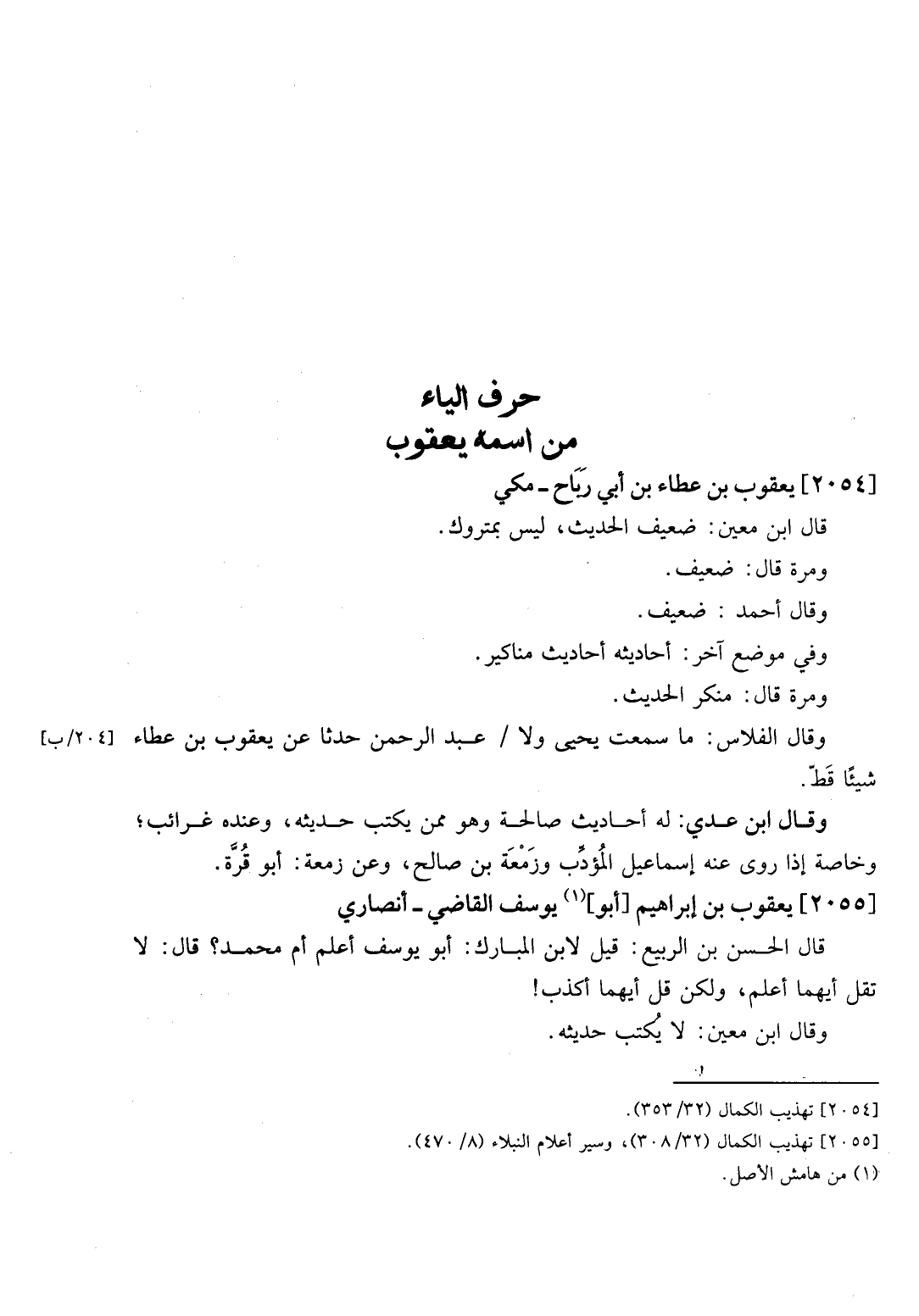[2055] يَعْقُوب بن إِبْرَاهِيم [أَبُو] يُوسُف القَاضِي - أَنْصَارِي