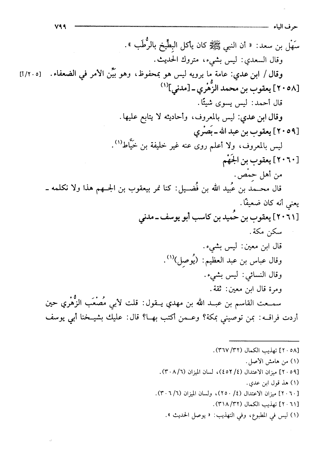 [2058] يَعْقُوب بن مُحَمَّد الزُّهْرِيّ -[مدنِي]