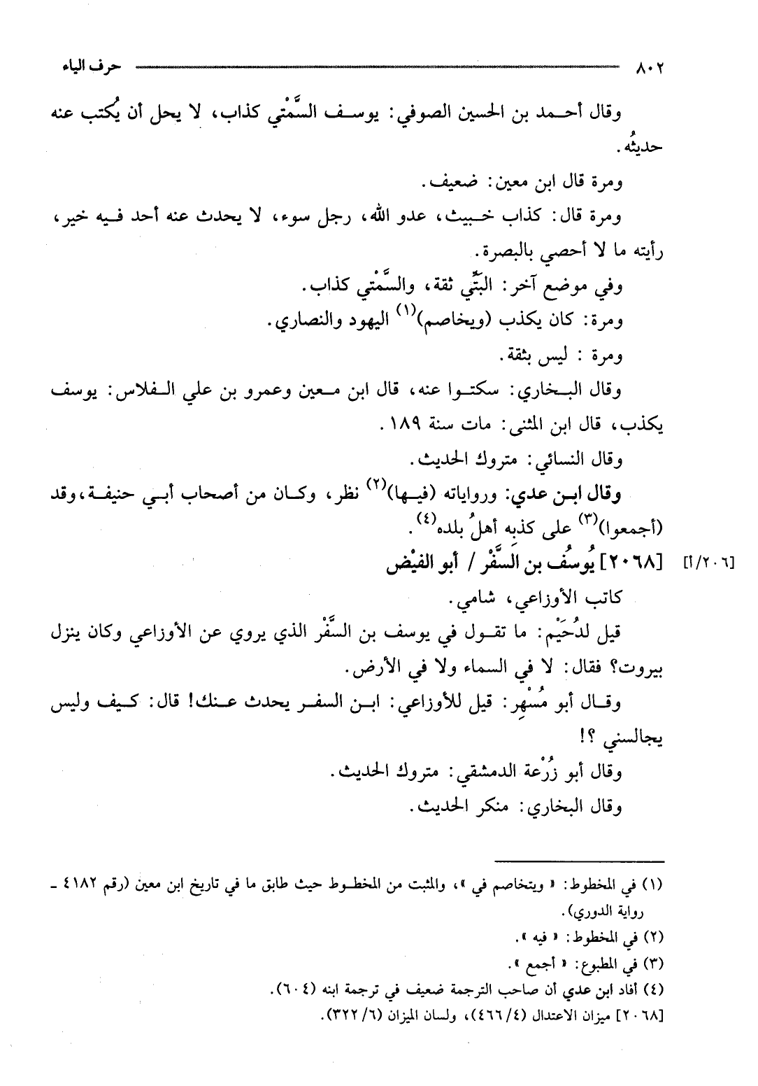 [2068] يُوسُف بن السّفر / أَبُو الْفَيْض