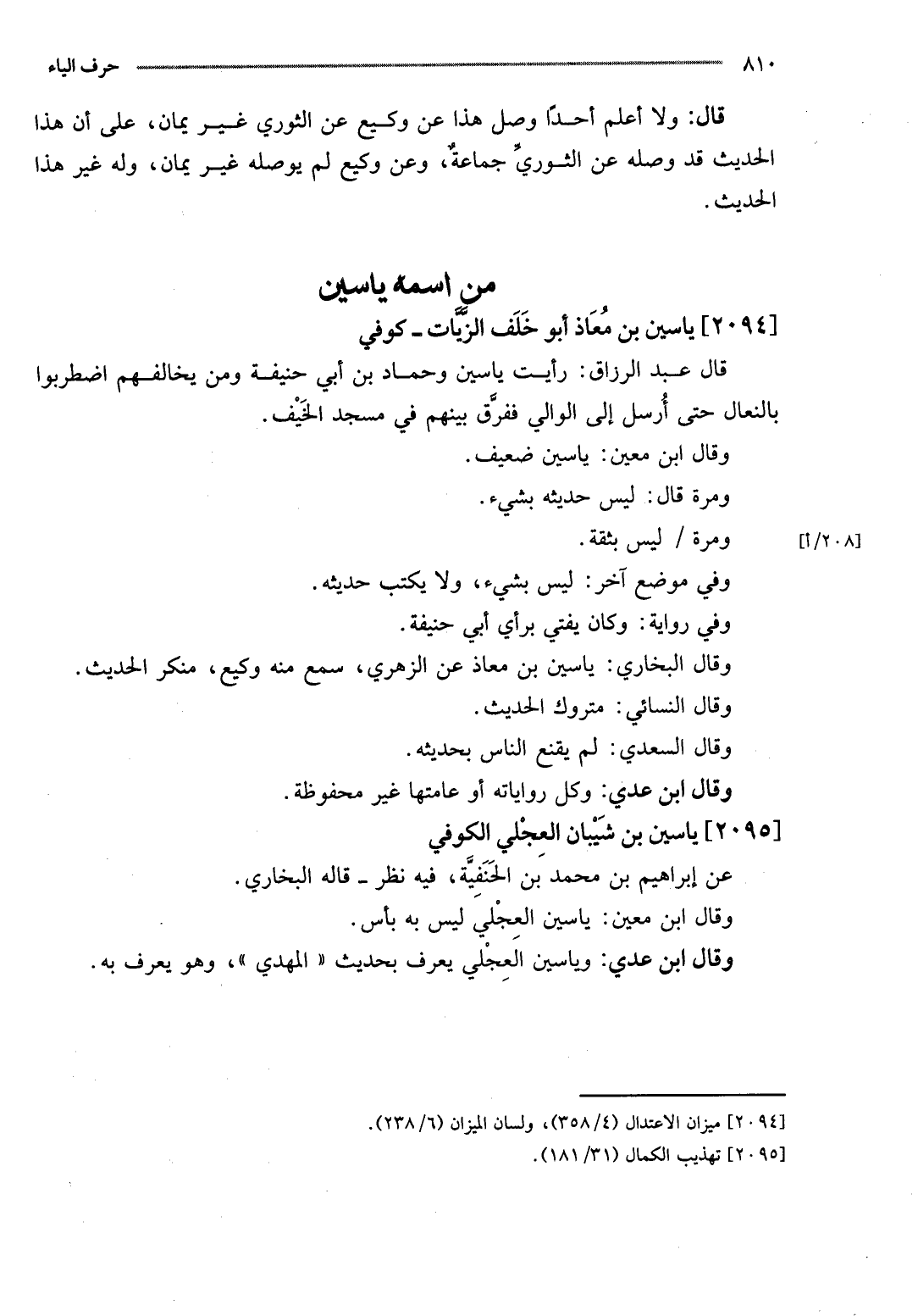 وَقَالَ ابْن معِين: ياسين ضَعِيف.