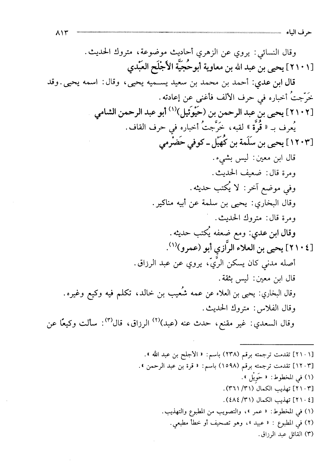 [2102] يحيى بن عبد الرَّحْمَن بن (حيوئيل) أَبُو عبد الرَّحْمَن الشَّامي