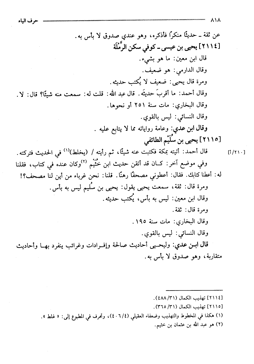 [2114] يحيى بن عِيسَى - كُوفِي سكن الرملة