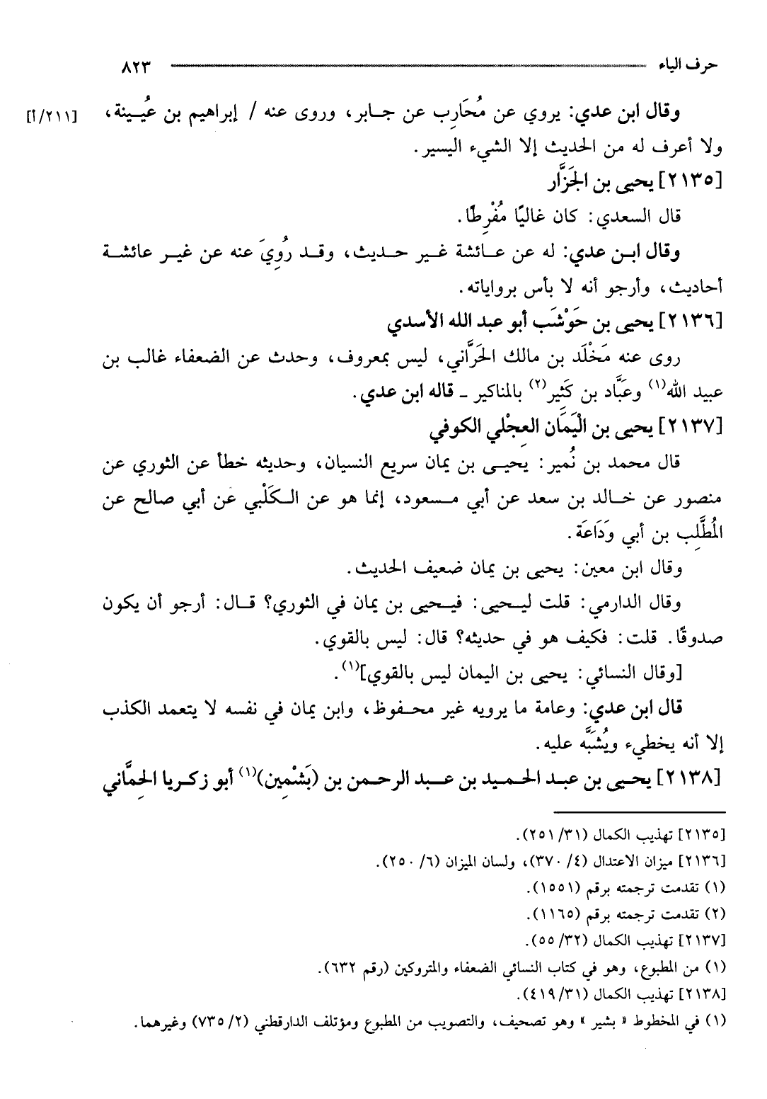 [2138] يحيى بن عبد الحميد بن عبد الرَّحْمَن بن (بشمين) أَبُو زَكَرِيَّا الْحمانِي