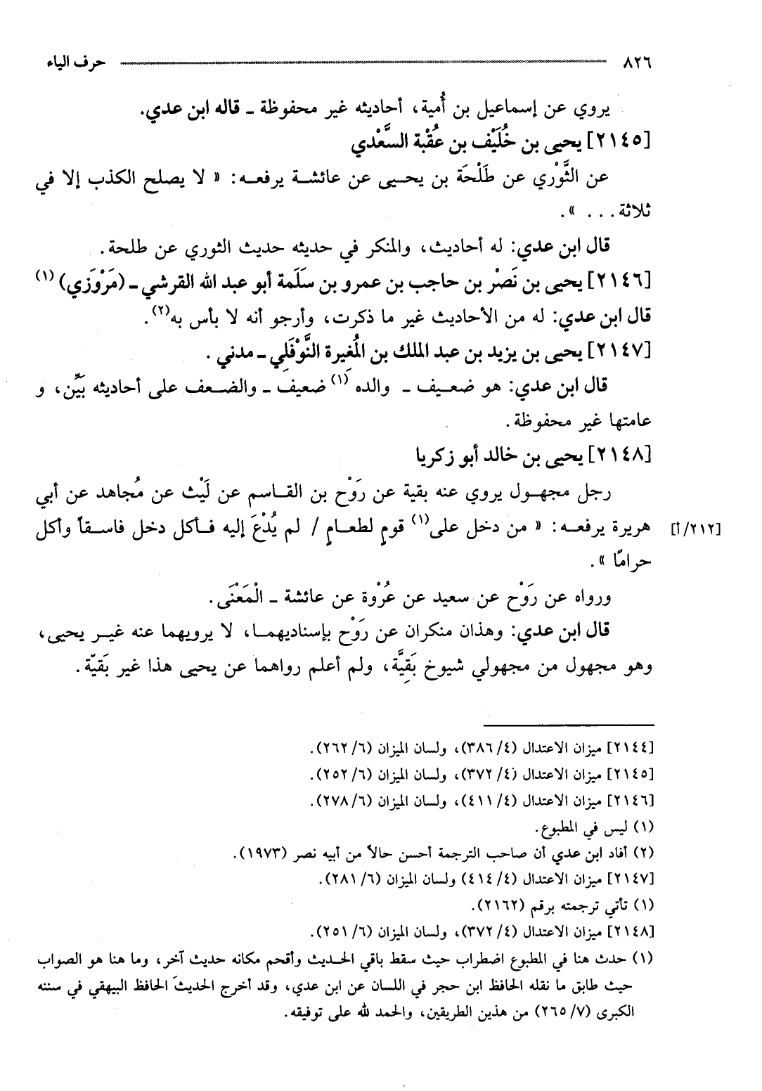 قَالَ ابْن عدي: وَهَذَانِ منكران عَن روح بإسناديهما، لَا يرويهما عَنهُ غير يحيى، وَهُوَ مَجْهُول من مجهولي شُيُوخ بَقِيَّة، وَلم أعلم رَوَاهُمَا عَن يحيى هَذَا غير بَقِيَّة.