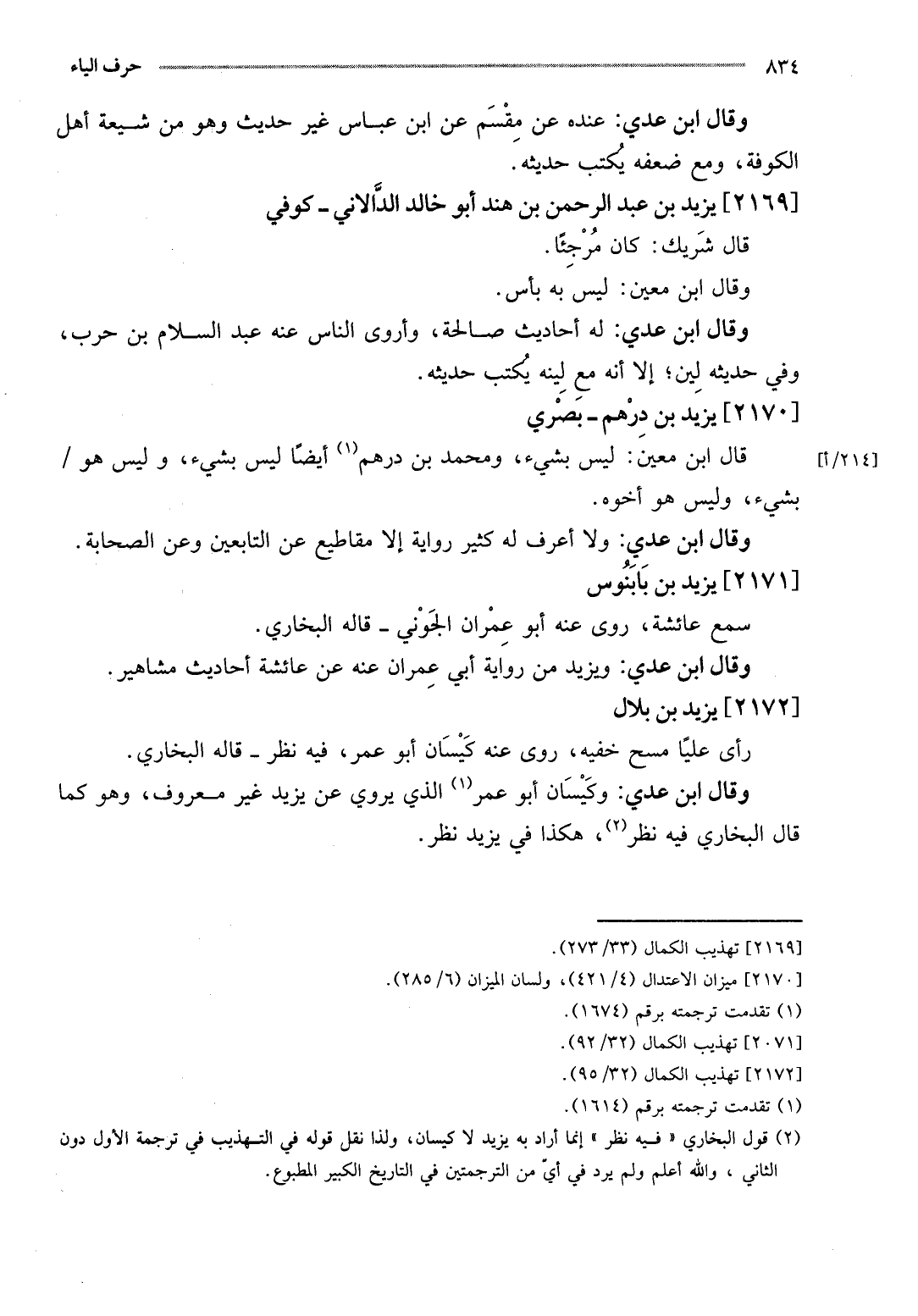 وَقَالَ ابْن عدي: وكيسان أَبُو عمر الَّذِي يروي عَن يزِيد غير مَعْرُوف، وَهُوَ كَمَا قَالَ البُخَارِيّ فِيهِ نظر، هَكَذَا فِي يزِيد نظر.