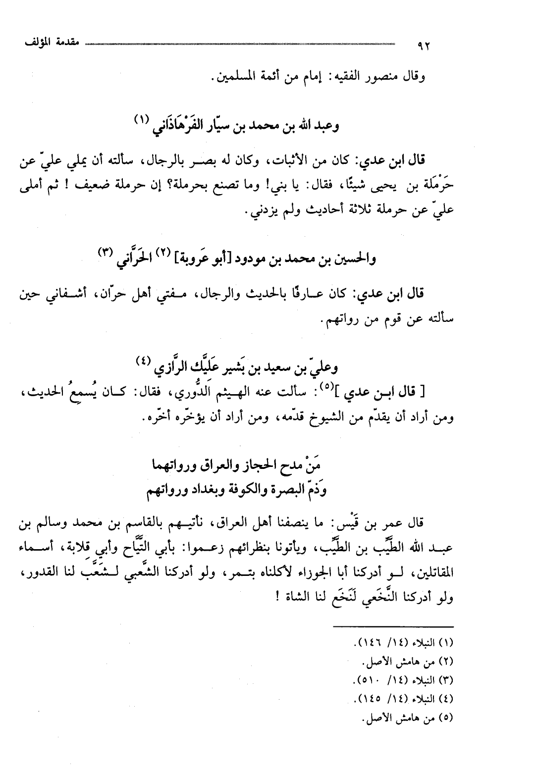 قَالَ عمر بن قيس: مَا ينصفنا أهل الْعرَاق، نأتيهم بالقاسم بن مُحَمَّد وَسَالم بن عبد الله الطّيب بن الطّيب، ويأتونا بنظرائهم زَعَمُوا: بِأبي التياح وَأبي قلَابَة، أَسمَاء المقاتلين، لَو أدركنا أَبَا الجوزاء لأكلناه بِتَمْر، وَلَو أدركنا الشّعبِيّ لشعب لنا الْقُدُور، وَلَو أدركنا النَّخعِيّ لنخع لنا الشَّاة!