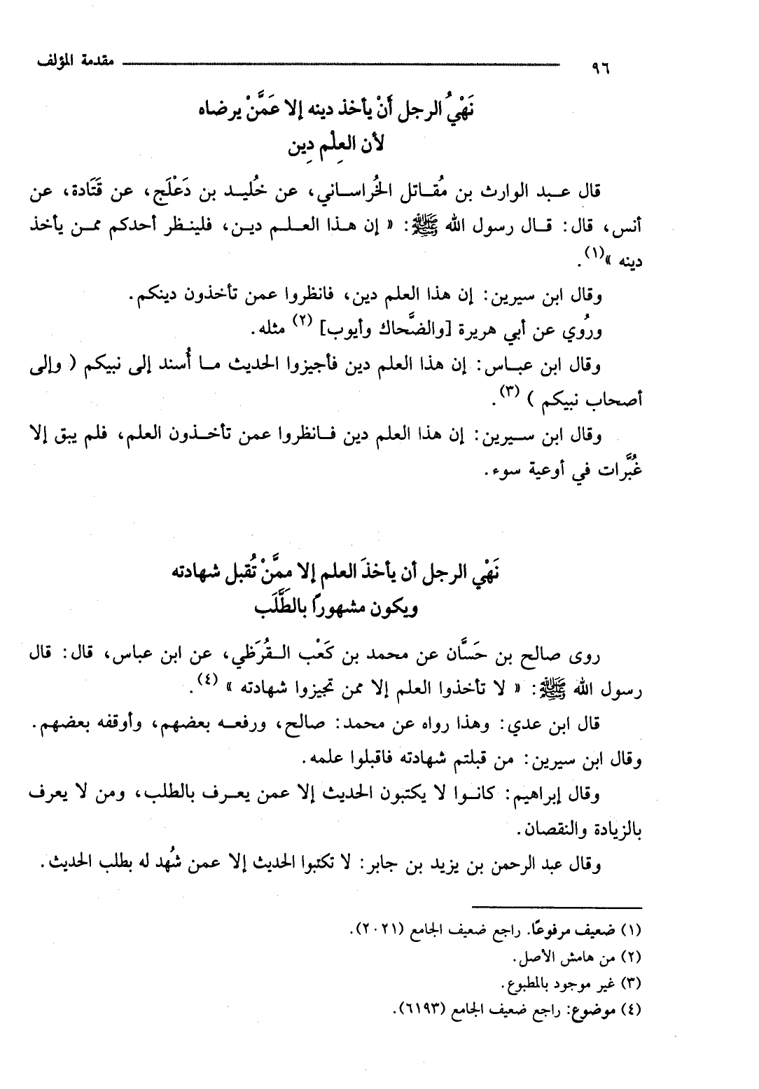 وَقَالَ ابْن سِيرِين: إِن هَذَا الْعلم دين، فانظروا عَمَّن تأخذون دينكُمْ.