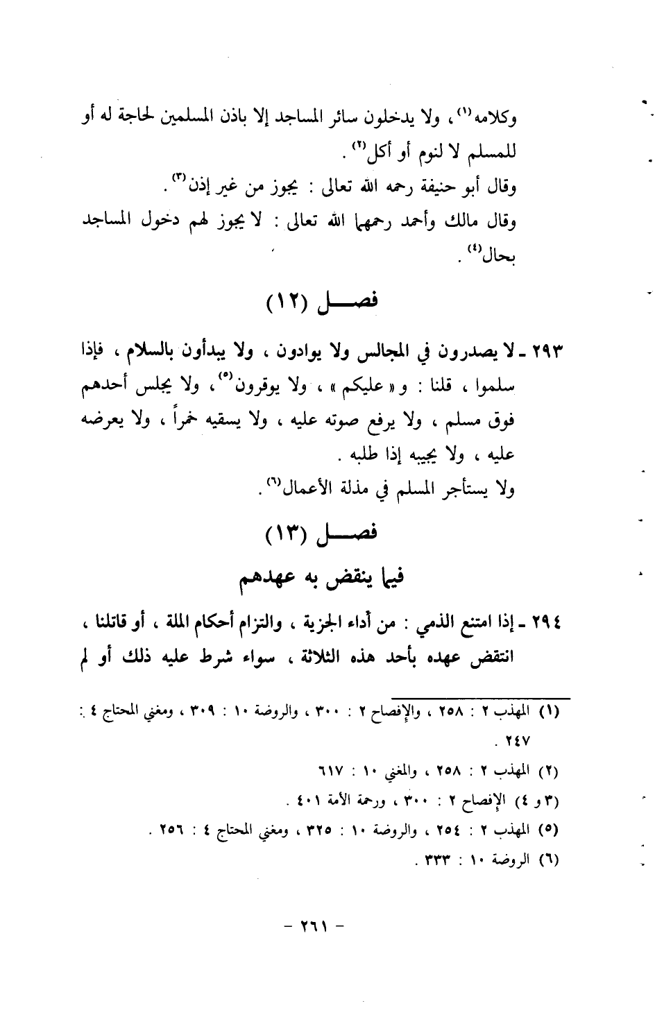 294 - إِذا امْتنع الذِّمِّيّ: من أَدَاء الْجِزْيَة، والتزام أَحْكَام الْملَّة، أَو قاتلنا، انتفض عَهده بِأحد هَذِه الثَّلَاثَة، سَوَاء شَرط عَلَيْهِ ذَلِك أَو لم