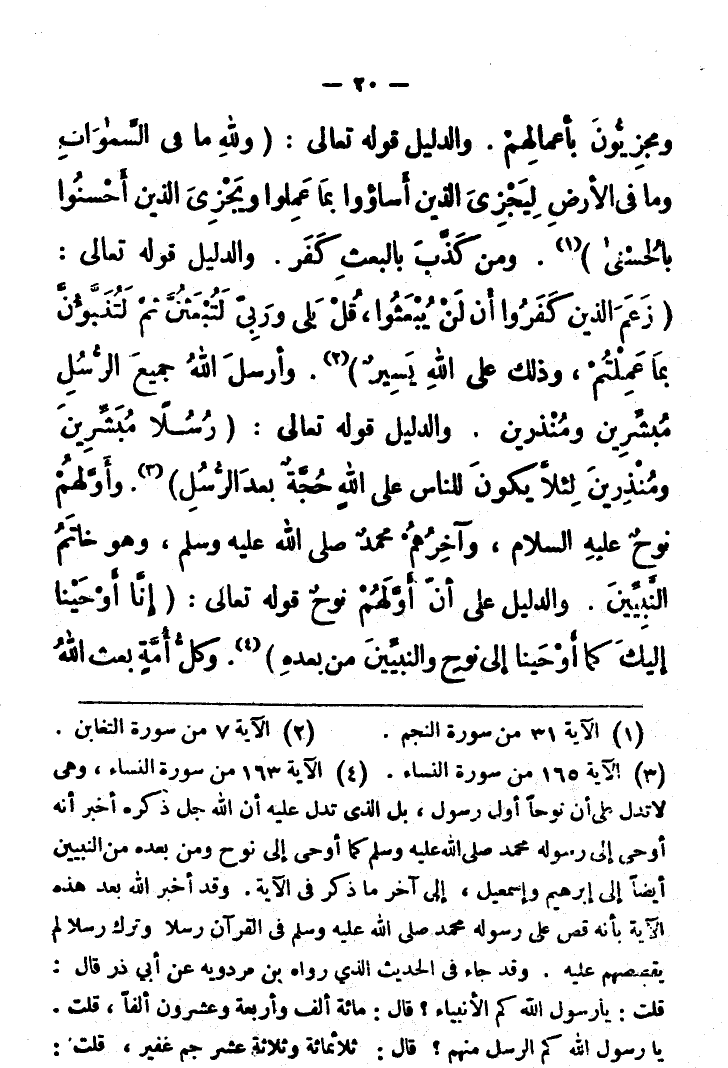 وَلَهُ مِنَ الِعُمُرِ ثَلاثٌ وَسِتُّونَ سَنَةً مِنْهَا أَرْبَعُونَ قَبْلَ النُّبُوَّةِ وَثَلاثٌ وعشرون نبيا رسولا. نبئ باقرأ. وأرسل بالمدثر. وَبَلَدُهُ مَكَّةُ بَعَثَهُ اللهُ بِالنِّذَارَةِ عَنِ الشِّرْكِ ويدعو إِلَى التَّوْحِيدِ، وَالدَّلِيلُ قَوْلُهُ تَعَالَى: {يَا أَيُّهَا الْمُدَّثِّرُ - قُمْ فَأَنْذِرْ - وَرَبَّكَ فَكَبِّرْ - وَثِيَابَكَ فَطَهِّرْ - وَالرُّجْزَ فَاهْجُرْ - وَلَا تَمْنُنْ تَسْتَكْثِرُ - وَلِرَبِّكَ فَاصْبِرْ} [المدثر: 1 - 7] المدثر آية 1 - 7، وَمَعْنَى قُمْ فَأَنذِرْ: يُنْذِرُ عَنِ الشِّرْكِ وَيَدْعُو إلى التوحيد، وربك فكبر عَظِّمْهُ بِالتَّوْحِيدِ، وَثِيَابَكَ فَطَهِّرْ: أَيْ طَهِّرْ أَعْمَالَكَ من الشِّرْكِ، وَالرُّجْزَ فَاهْجُرْ، الرُّجْزَ: الأَصْنَامُ، وَهَجْرُهَا: تَرْكُهَا وأهلها وَالْبَرَاءَةُ مِنْهَا وَأَهْلُهَا.
