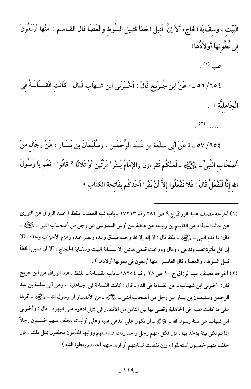 654/ 56 - "عَنْ ابن جُرَيج قَالَ: أَخْبَرَني ابن شهَاب قَالَ: كَانَتِ الْقسَامَةُ فِي الْجَاهِلِيَّةِ".