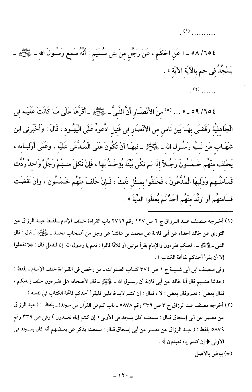 (¬2) أخرجه مصنف عبد الرزاق ج 3 ص 339 رقم 5878 - باب كم في القرآن من سجدة- بلفظ: (عبد الرزاق عن معمر عن أبي إسحاق قال: سمعته كان يسجد في الأولى {إِنْ كُنْتُمْ إِيَّاهُ تَعْبُدُونَ} وفي ص 339 رقم 5879 بلفظ: (عبد الرزاق عن معمر عن أبي إسحاق قال: سمعته يذكر عن بعضهم أنه كان يسجد في الأولى {إِنْ كُنْتُمْ إِيَّاهُ تَعْبُدُونَ}.