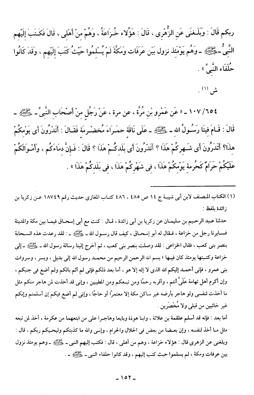 (¬1) الكتاب المصنف لابن أبي شيبة ج 14 ص 485، 486 كتاب المغازي حديث رقم 18749 عن زكريا بن زائدة بلفظ: