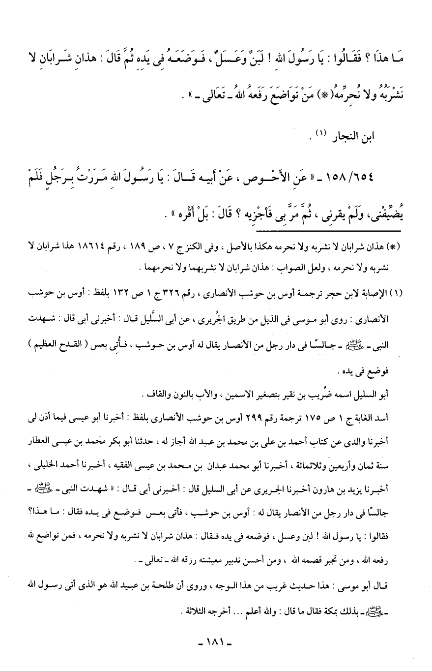 (*) هذان شرابان لا نشربه ولا نحرمه هكذا بالأصل، وفي الكنز ج 7، ص 189، رقم 18614 هذا شرابان لا نشربه ولا نحرمه، ولعل الصواب: هذان شرابان لا نشربهما ولا نحرمهما.