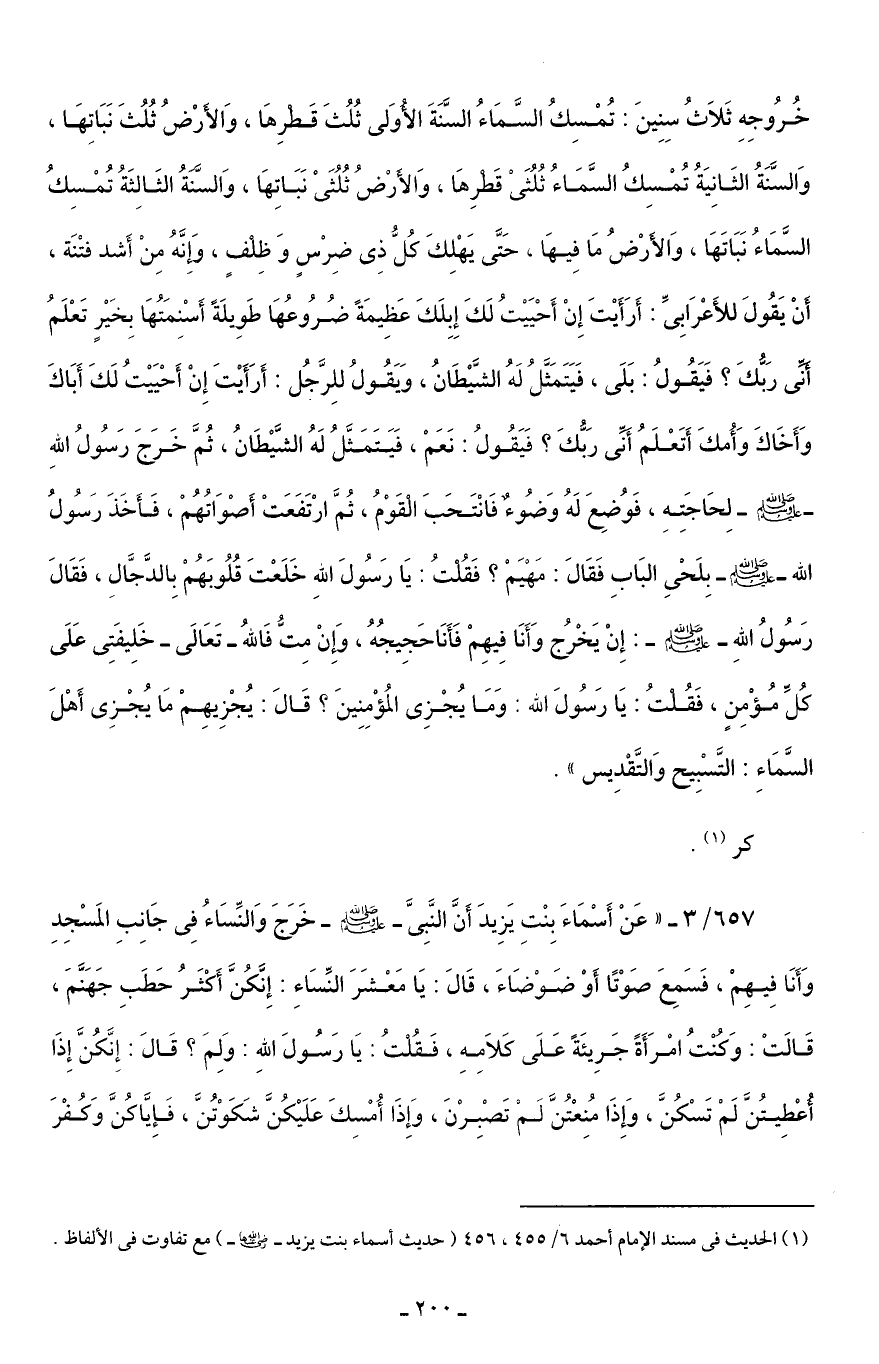 (¬1) الحديث في مسند الإمام أحمد 6/ 455، 456 (حديث أسماء بنت يزيد - رضي الله عنها -) مع تفاوت في الألفاظ.