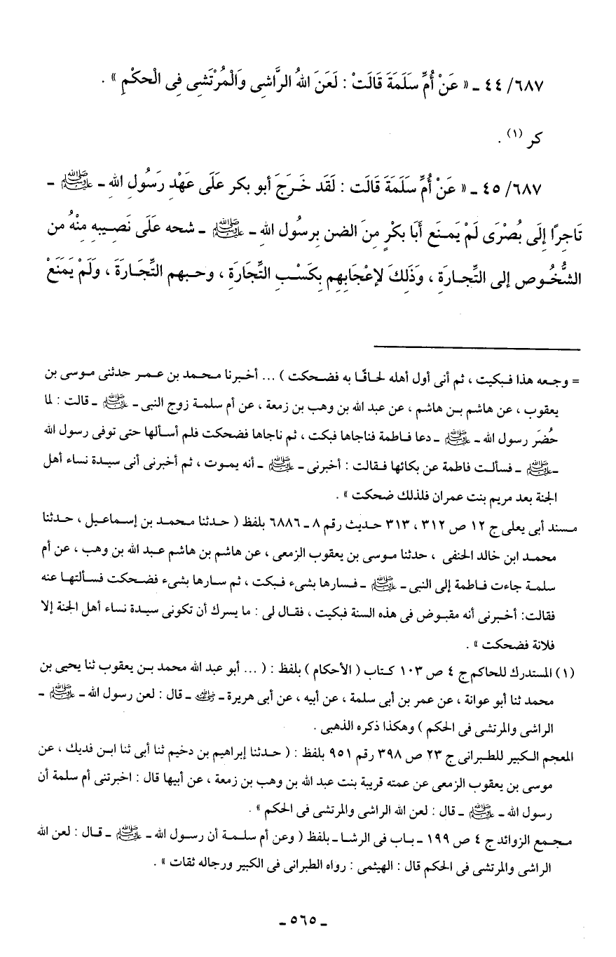 687/ 44 - "عَنْ أُمِّ سَلَمَةَ قَالَتْ: لَعَنَ اللهُ الرَّاشِي وَالْمُرْتَشِي فِي الْحكْمِ".