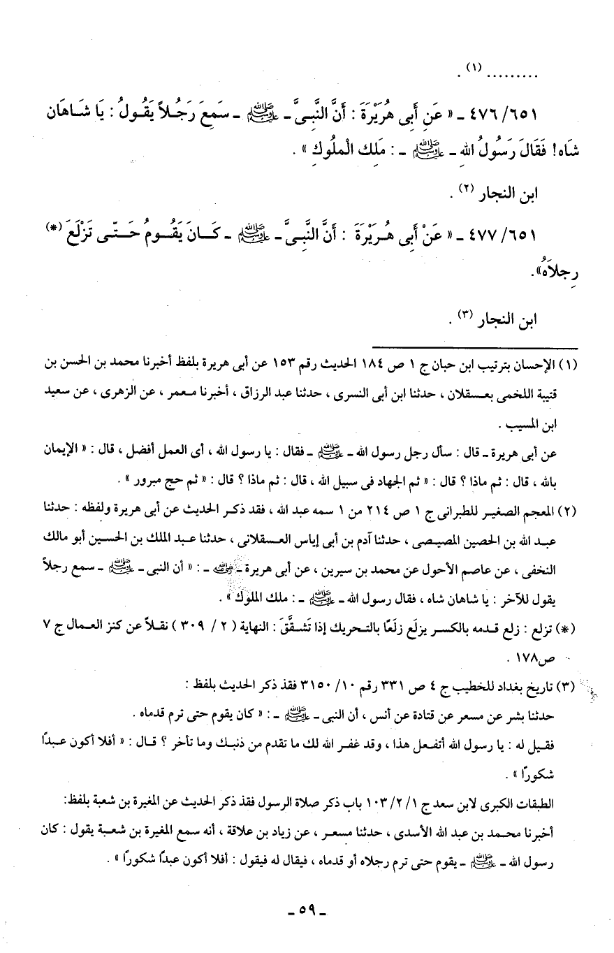 651/ 477 - "عَنْ أَبِي هُرَيْرَةَ: أَنَّ النَّبِيَّ - صلى الله عليه وسلم - كَانَ يَقُومُ حَتّى تَزْلَعَ (*) رِجلَاهُ".