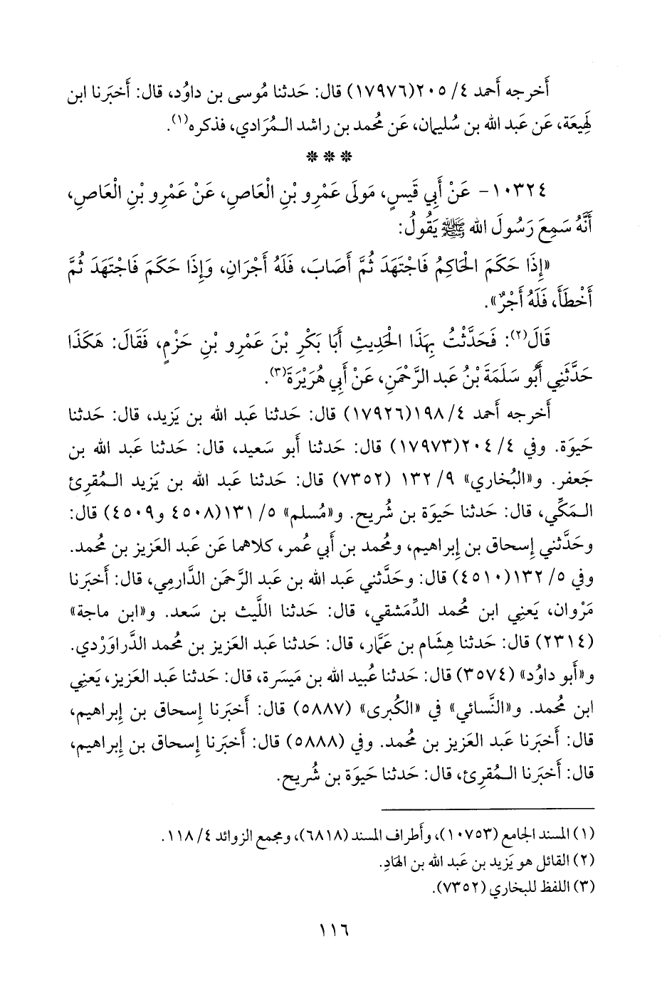 ١٠٣٢٤ - عن أبي قيس مولى عَمرو بن العاص، عن عَمرو بن العاص، أنه سمع رسول الله صَلى الله عَليه وسَلم يقول: