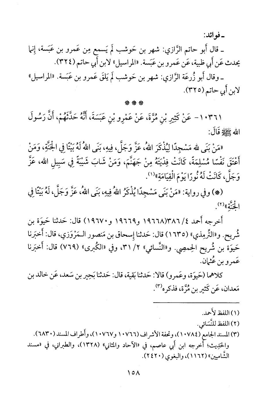 - وقال أَبو زُرعَة الرازي: شهر بن حوشب لم يلق عَمرو بن عبسة. «المراسيل» لابن أبي حاتم (٣٢٥).