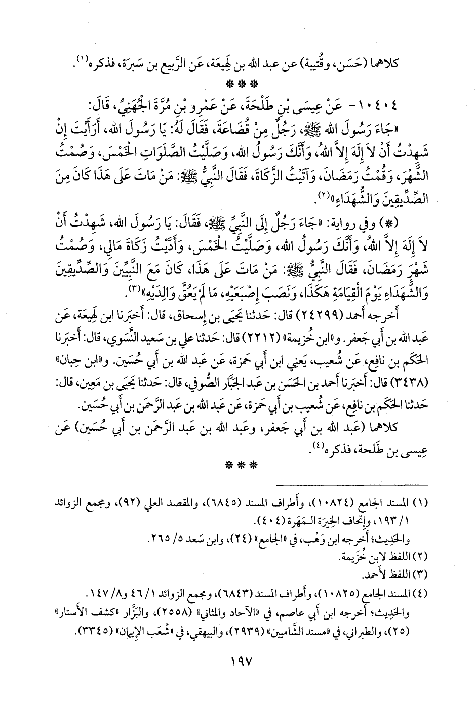 (¬٣) المسند الجامع (١٠٨٢٥)، وأطراف المسند (٦٨٤٣)، ومَجمَع الزوائد ١/ ٤٦ و ٨/ ١٤٧.