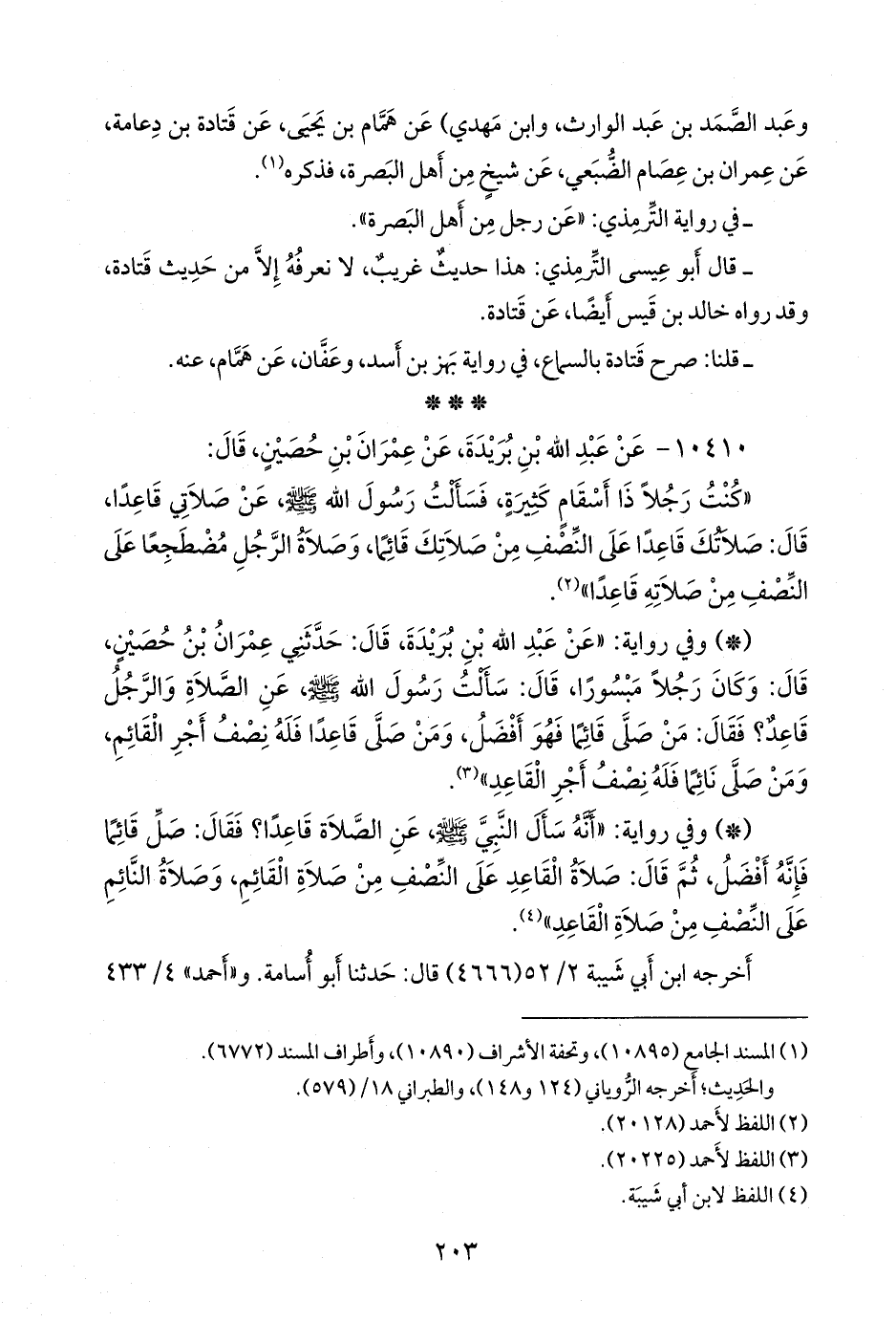 - وفي رواية: «عن عبد الله بن بُريدة، قال: حدثني عمران بن حصين، قال: وكان رجلا مبسورا، قال: سألت رسول الله صَلى الله عَليه وسَلم عن الصلاة والرجل قاعد؟ فقال: من صلى قائمًا فهو أفضل، ومن صلى قاعدا فله نصف أجر القائم، ومن صلى نائما فله نصف أجر القاعد» (¬٢).