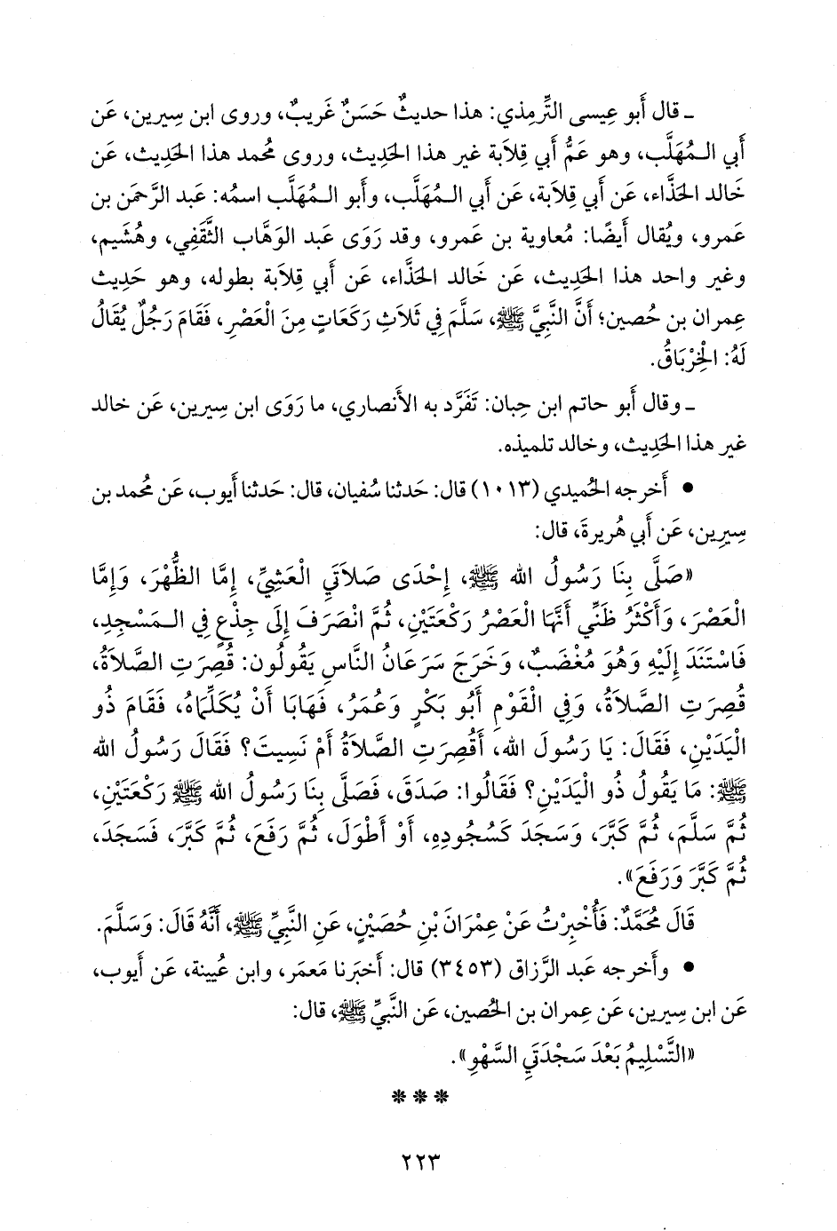 قال محمد: فأخبرت عن عمران بن حصين، عن النبي صَلى الله عَليه وسَلم أنه قال: وسلم.