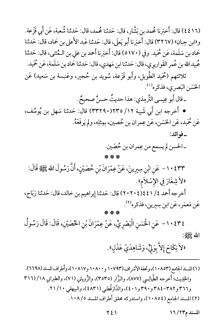 ١٠٤٣٣ - عن ابن سِيرين، عن عمران بن حصين، أن رسول الله صَلى الله عَليه وسَلم قال: