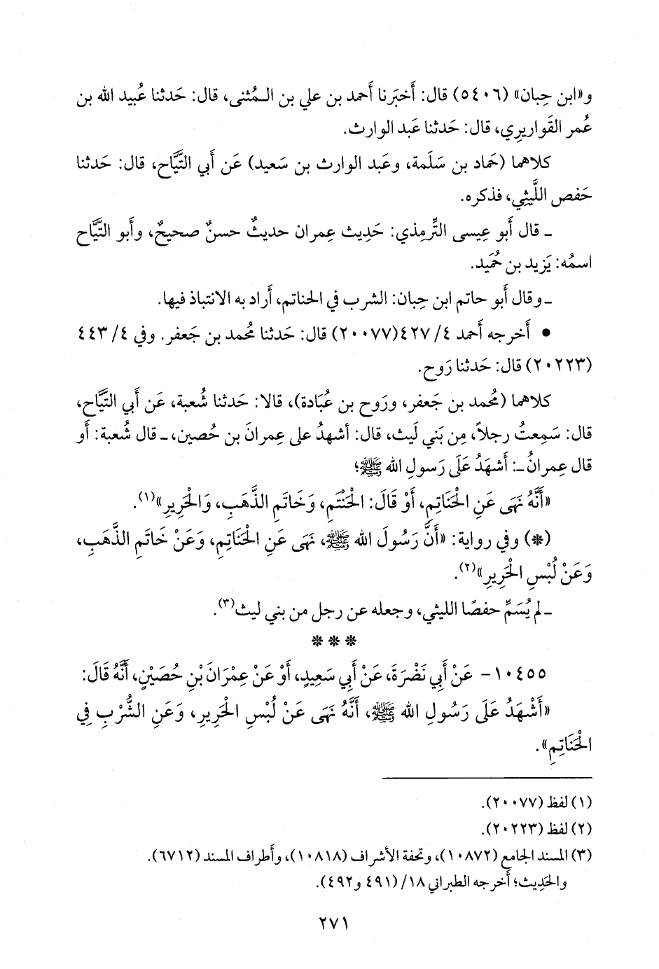 (¬٣) المسند الجامع (١٠٨٧٢)، وتحفة الأشراف (١٠٨١٨)، وأطراف المسند (٦٧١٢).