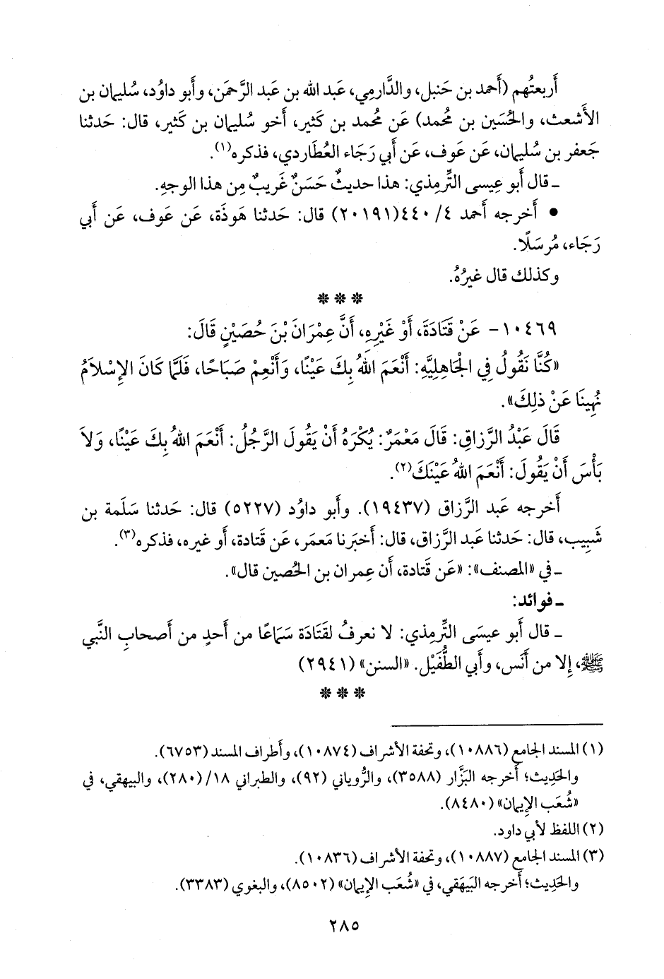 - في «المُصَنَّف»: «عن قتادة، أن عمران بن الحصين قال».