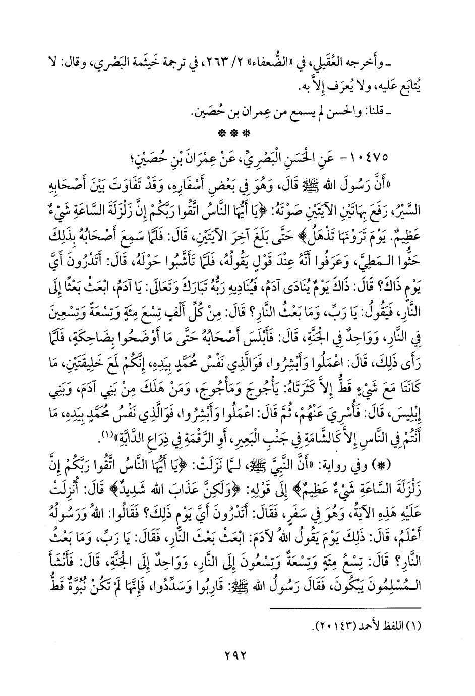 ١٠٤٧٥ - عن الحسن البصري، عن عمران بن حصين؛