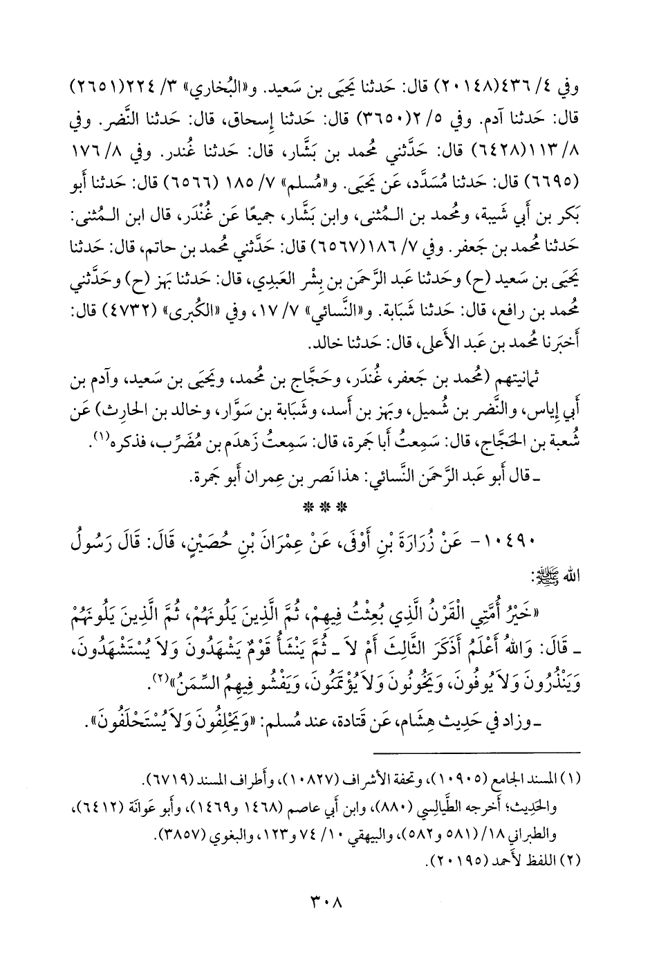 ١٠٤٩٠ - عن زُرارة بن أوفى، عن عمران بن حصين، قال: قال رسول الله صَلى الله عَليه وسَلم: