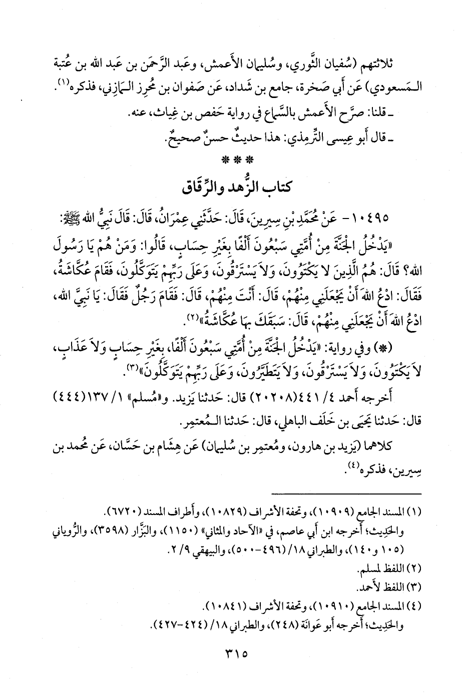 (¬٣) المسند الجامع (١٠٩١٠)، وتحفة الأشراف (١٠٨٤١).
