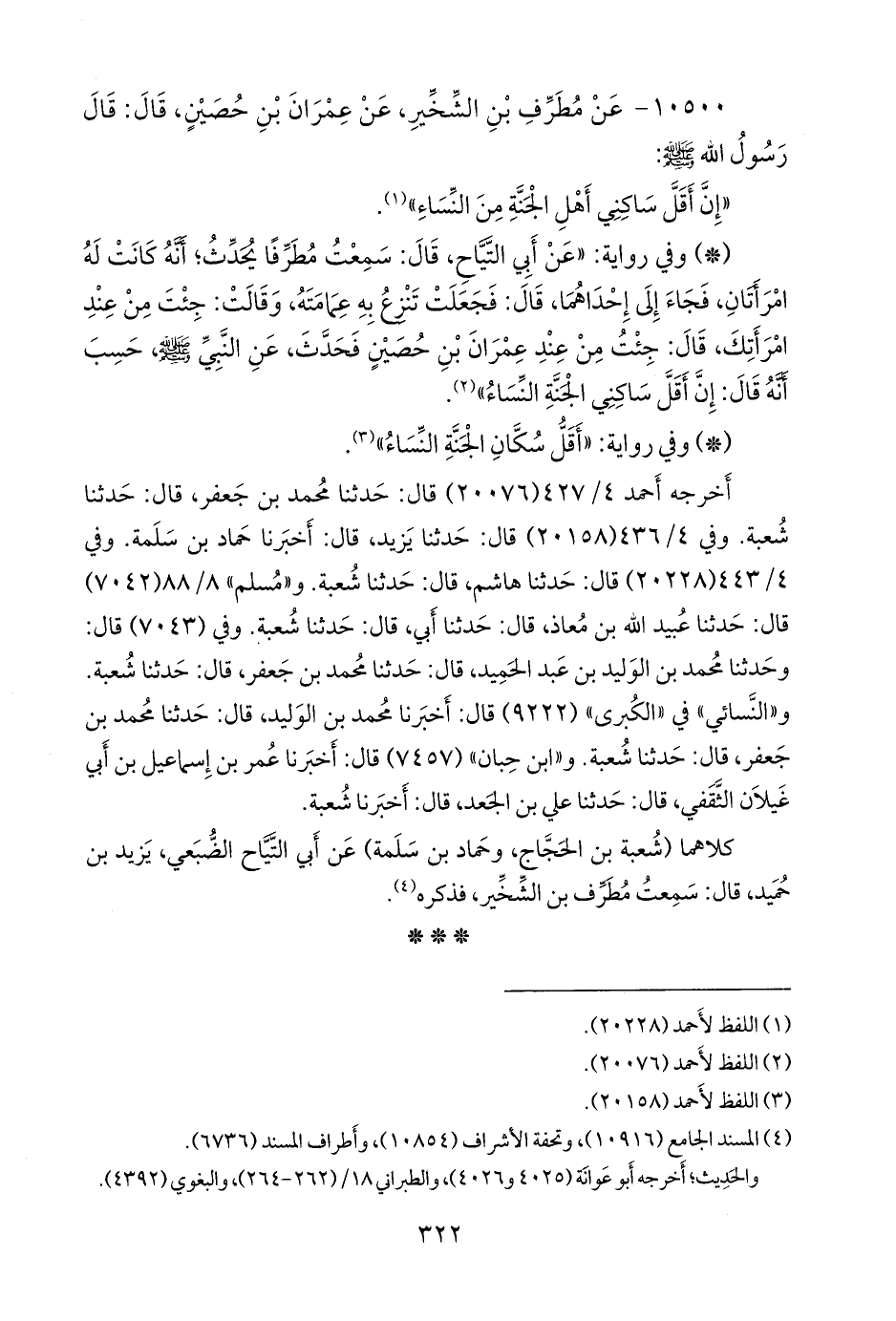 ١٠٥٠٠ - عن مطرف بن الشخير، عن عمران بن حصين، قال: قال رسول الله صَلى الله عَليه وسَلم: