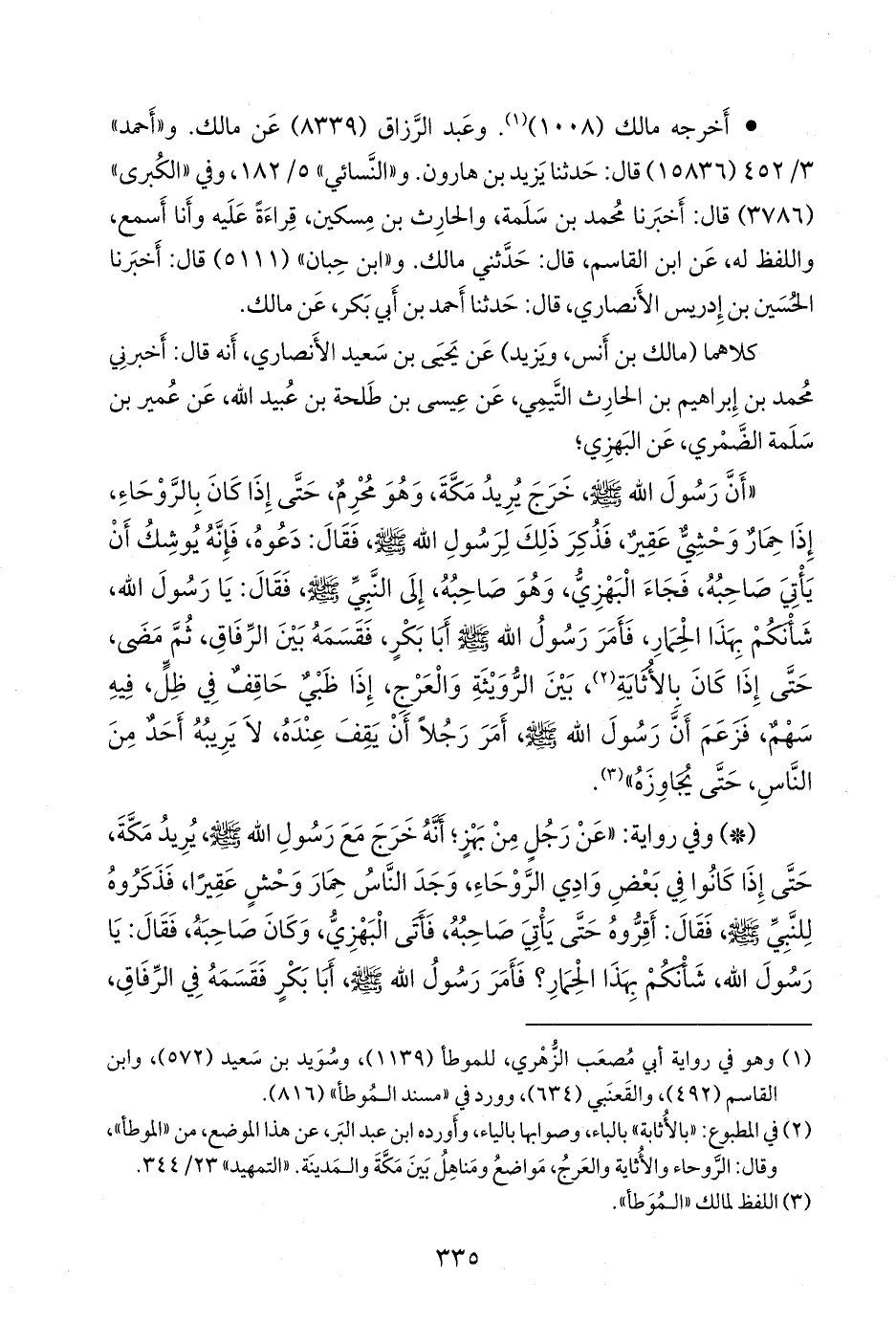 (¬١) في المطبوع: «بالأثابة» بالباء، وصوابها بالياء، وأورده ابن عبد البَر، عن هذا الموضع، من «الموطأ»، وقال: الروحاء والأثاية والعرج، مواضع ومناهل بين مكة والمدينة. «التمهيد» ٢٣/ ٣٤٤.