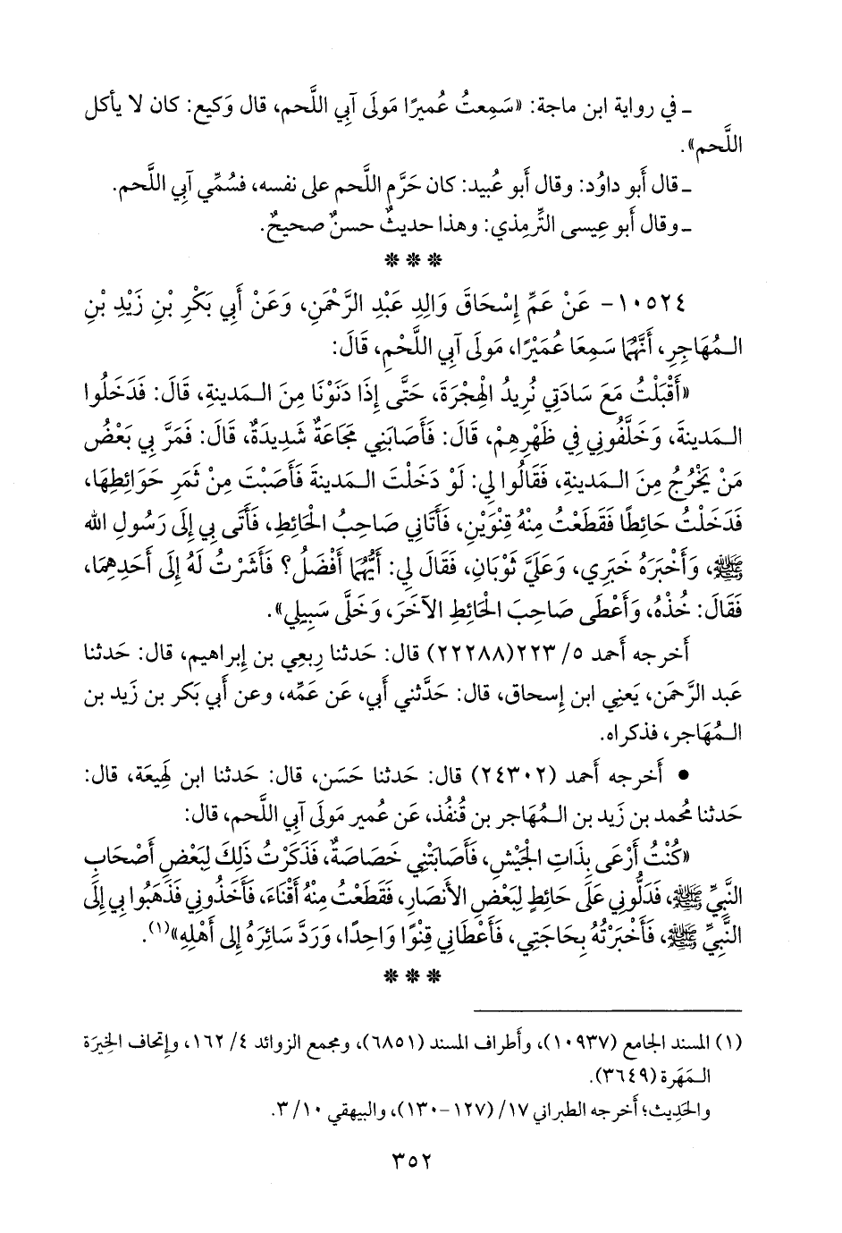 ١٠٥٢٤ - عن عم إسحاق والد عبد الرَّحمَن، وعن أَبي بكر بن زيد بن المهاجر، أنهما سمعا عميرا مولى آبي اللحم، قال: