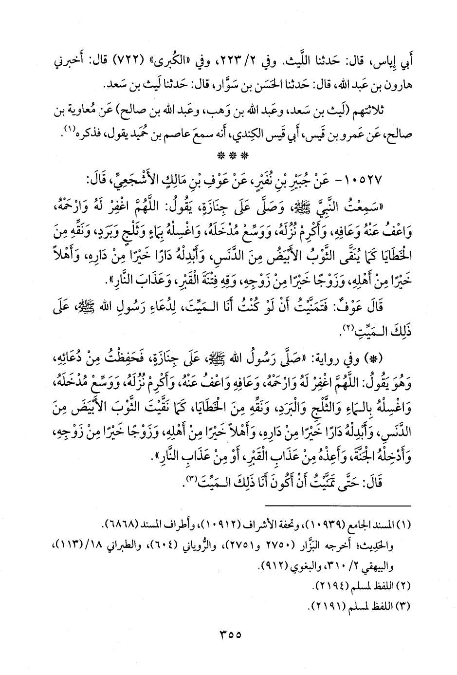 قال عوف: فتمنيت أن لو كنت أنا الميت، لدعاء رسول الله صَلى الله عَليه وسَلم على ذلك الميت (¬١).