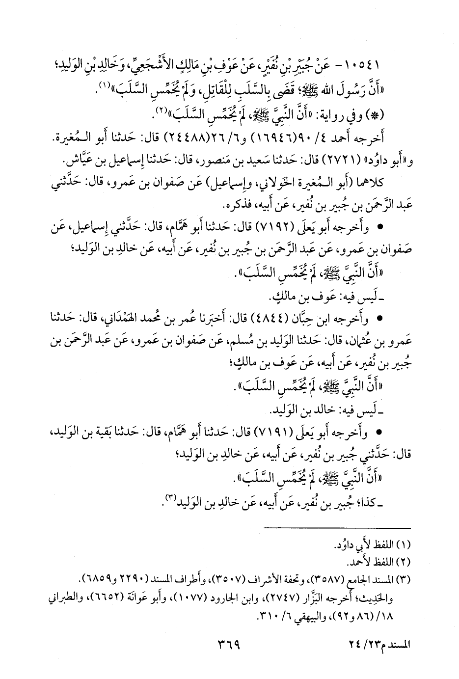 • وأخرجه أَبو يَعلى (٧١٩٢) قال: حدثنا أَبو همام، قال: حدثني إسماعيل، عن صفوان بن عَمرو، عن عبد الرَّحمَن بن جُبير بن نُفير، عن أَبيه، عن خالد بن الوليد؛