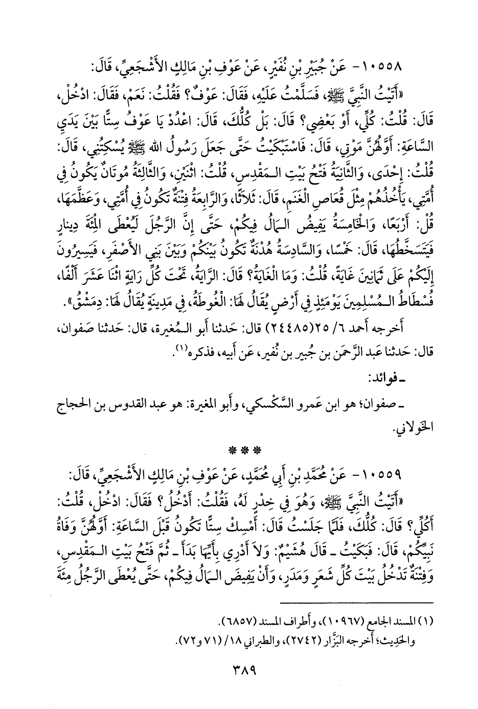 ١٠٥٥٨ - عن جُبير بن نُفير، عن عوف بن مالك الأشجعي، قال: