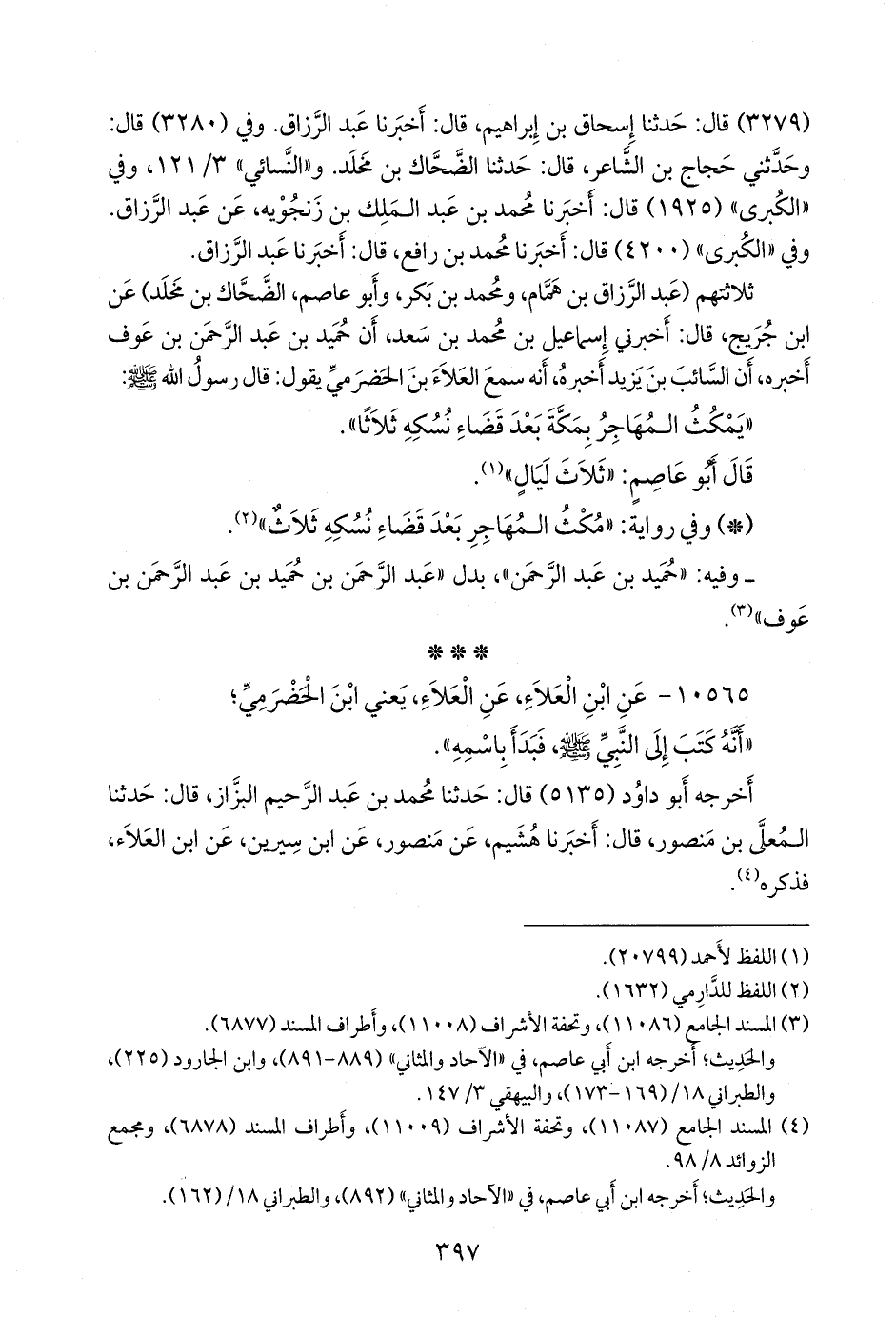 ١٠٥٦٥ - عن ابن العلاء، عن العلاء، يعني ابن الحضرمي؛